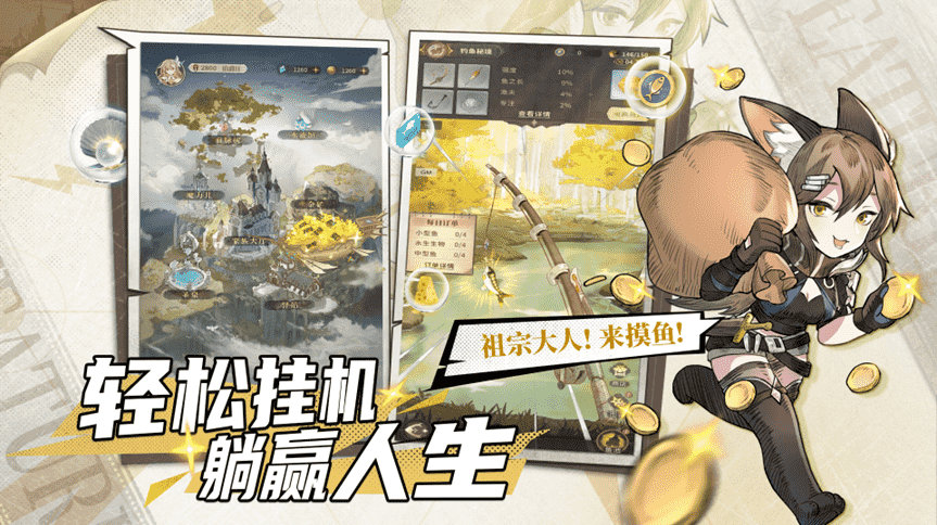 躺平就能猛猛发育???谁能拒绝~挂机冒险,,,收复领地,,源源不断的资源来袭,,,重振家族指日可待!!据说还有绝佳隐秘的摸鱼据点!!!